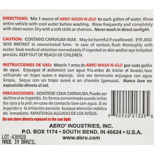 Автошампунь-поліроль концентрат ABRO Wash-N-Glo з воском 946 мл