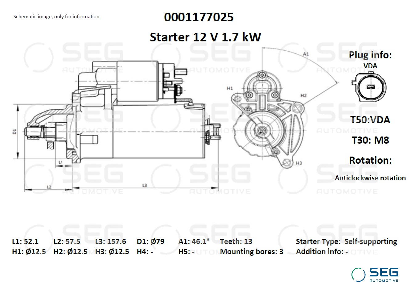Конкурентні ціни на Стартер SEG AUTOMOTIVE 0001177025 та вигідна система знижок для постійних клієнтів;