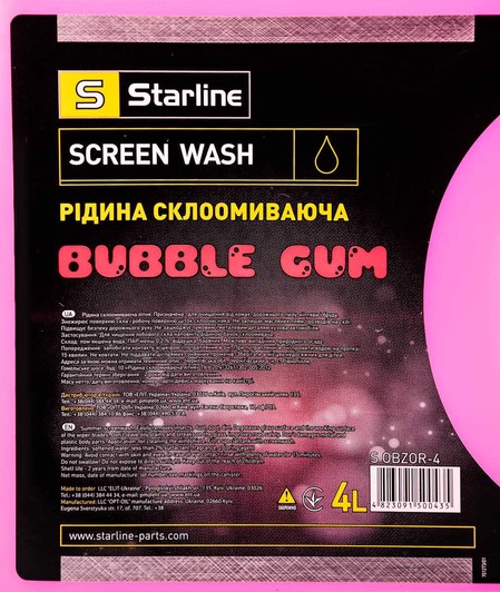 Омивач Starline літній bubble gum 4 л Starline OBZOR4